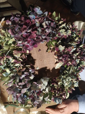 Du wickelst einen Türkranz (ca. 25 - 30 cm) mit wunderbar haltbaren Herbsthortensien.